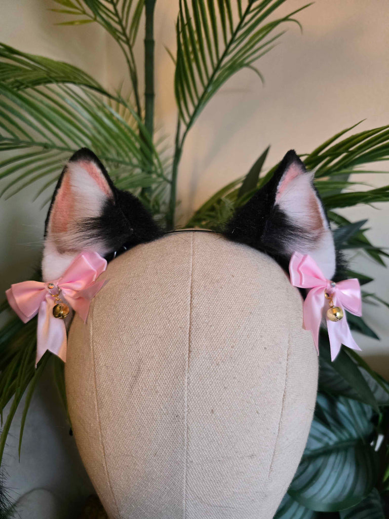 2.5 inch tall cat ears with removeable bows and matching curl tail.